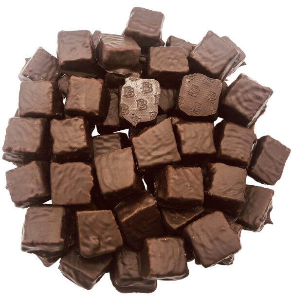 Eine weitere, besondere und handgefertigte Spezialität aus unserem Hause ist der Pfefferminzbruch, welcher per Hand in mundgerechte Stücke gebrochen wird. Die Würfel, bestehend aus zart schmelzendem Fondant, verbreiten einen herrlich frischen Pfefferminzgeschmack im Mund. Die Kuvertüre aus Zartbitterschokolade bildet einen passenden Gegenpart dazu.