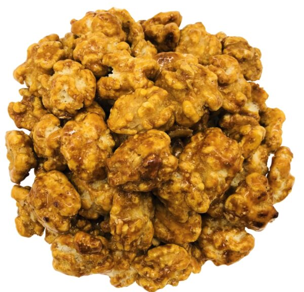 Walnüsse sind wahre Energiewunder. Reich an Vitaminen, Zink, Omega 3 Fettsäuren und allem was das Herz benötigt, gelten sie als richtiges „Health Food“. Und per Hand kandiert werden sie zum richtigen „Soul Food“. Ein Wundermittel aus der Natur perfekt verarbeitet.