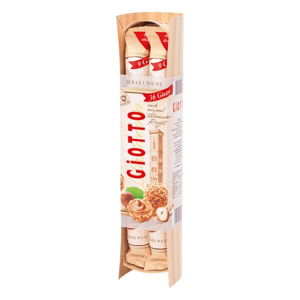 Eine feine Haselnuss-Magermilchcreme umhüllt von einer knusprigen Waffel und schonend gerösteten Haselnussstückchen machen GiOTTO unvergleichbar. Nach original italienischem Rezept!